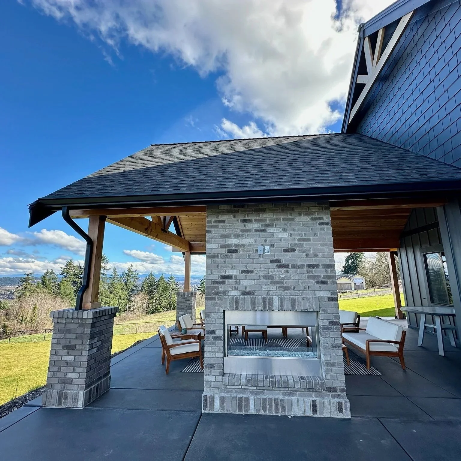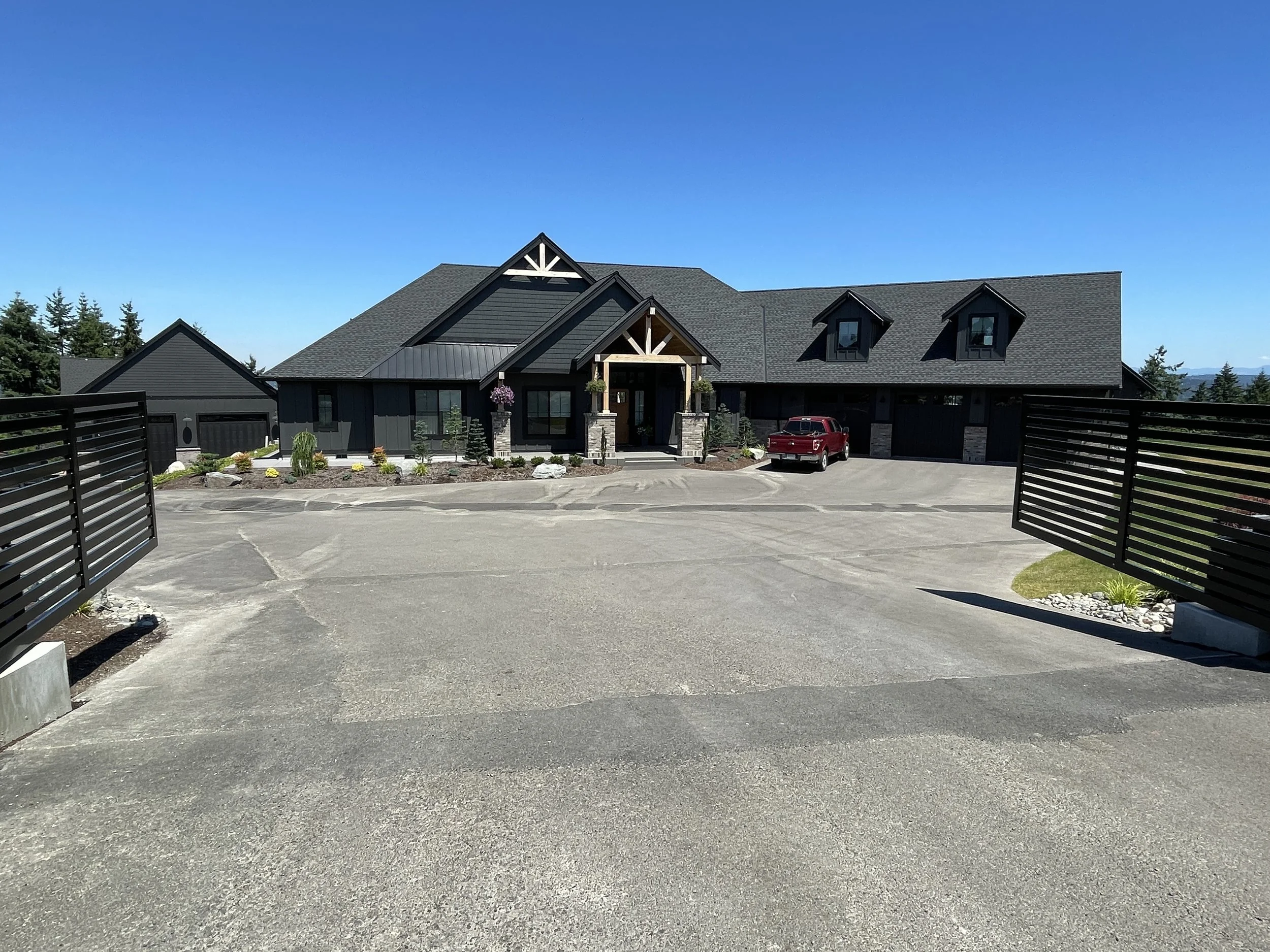 Nate assisted Chase and Amanda in working with Nate’s Home Designer to complete their Home Plans for their Dream Home. The home sits on a shy 5-acres with views of Puyallup Valley. The home is a one and a half story, European Craftsman style with steep roofs and spectacular Vaulted Ceilings and finishes. The Home has 3630-square-feet on the Main Level and 1109-square-feet on the Upper Level. 3.5-Baths of the main level and 1-full bath on the upper level. The Upper level includes a huge Bonus Room with a full kitchen plus a Home Office and large walk-in closet. Large 18’ x  26’ covered Out-door Living area with built-in Fireplace and Vaulted Ceilings.